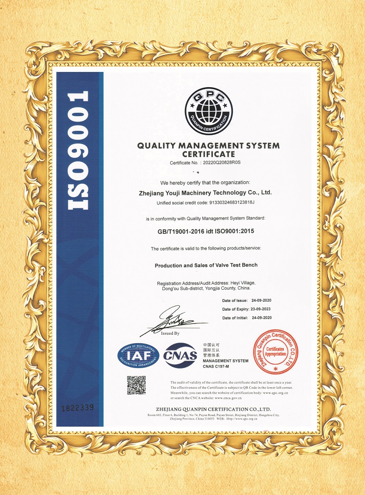 ISO9001質(zhì)量管理體系認(rèn)證證書