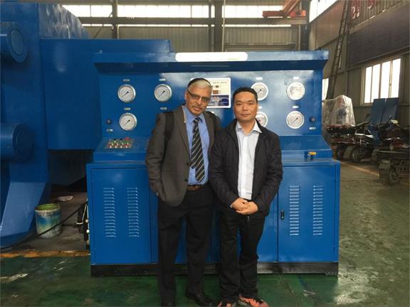 近日,印度(IVC)閥門公司INDIAN VALVE PVT.LTD總裁Mukherjee先生親自來浙江優(yōu)機(jī)機(jī)械科技有限公司驗(yàn)收1月份定制的蝶閥、球閥試驗(yàn)臺,這次訂購的設(shè)備是優(yōu)機(jī)公司國家專利產(chǎn)品:ZL 2014 2 0194312.6,液壓系統(tǒng)合理節(jié)能,操作人性化設(shè)計(jì),是1月份該閥門公司技術(shù)部經(jīng)理Tomy 先生來中國實(shí)地考察各大廠家生產(chǎn)工藝及企業(yè)資質(zhì)后精心篩選確定下來的采購設(shè)備,這次采購的設(shè)備是代替IVC公司原有老式閥門測試臺主要水壓和氣壓試驗(yàn)16”-32”的蝶閥和球閥。