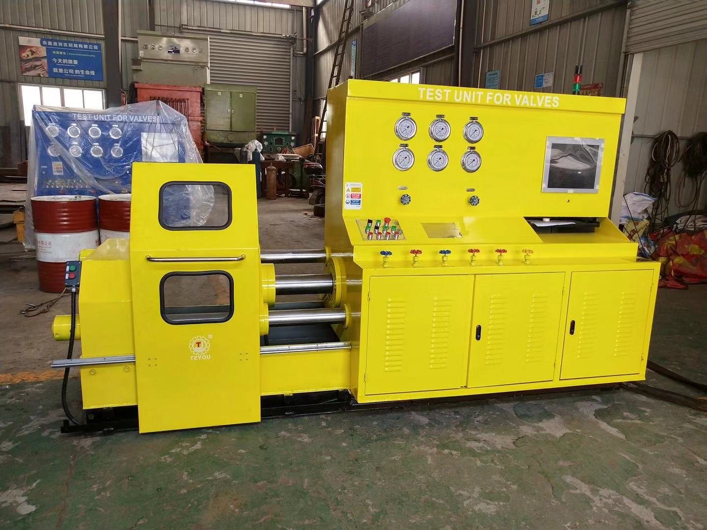 由于項(xiàng)目涉及重要工況閥門試壓檢驗(yàn)和二次檢測,項(xiàng)目組委會 邀請國內(nèi)優(yōu)良業(yè)績和資質(zhì)合格供應(yīng)商(生產(chǎn)廠家),標(biāo)委會成員技術(shù)部、設(shè)備部、采購部經(jīng)過廠家資質(zhì)能力篩選和技術(shù)論證,最終選用有中石油系統(tǒng)合作供應(yīng)業(yè)績的制造商浙江優(yōu)機(jī)機(jī)械科技有限公司的新型改進(jìn)型頂壓式JWT型閥門試驗(yàn)臺,檢測范圍涉及法蘭、焊接、絲扣等連接閥門,口徑范圍2”-24”,壓力范圍2.5-63.0Mpa此次中標(biāo)產(chǎn)品已通過浙江省工業(yè)新產(chǎn)品鑒定,也是發(fā)明專利產(chǎn)品,專利號:ZL 2016 1 0240324.1 主要針對高要求檢測單位。主要檢驗(yàn)球閥、截止閥、止回閥、閘閥等。是目前國內(nèi)技術(shù)領(lǐng)先的閥門試驗(yàn)設(shè)備,該產(chǎn)品先后中標(biāo)中石油大慶油田工程有限公司、中石油四川油建工程公司、中石油冀東油田工程公司等,產(chǎn)品憑借高精度、智能、節(jié)能、操作方便等特點(diǎn),成為第三方檢測、施工安裝單位、閥門生產(chǎn)企業(yè)首選產(chǎn)品。