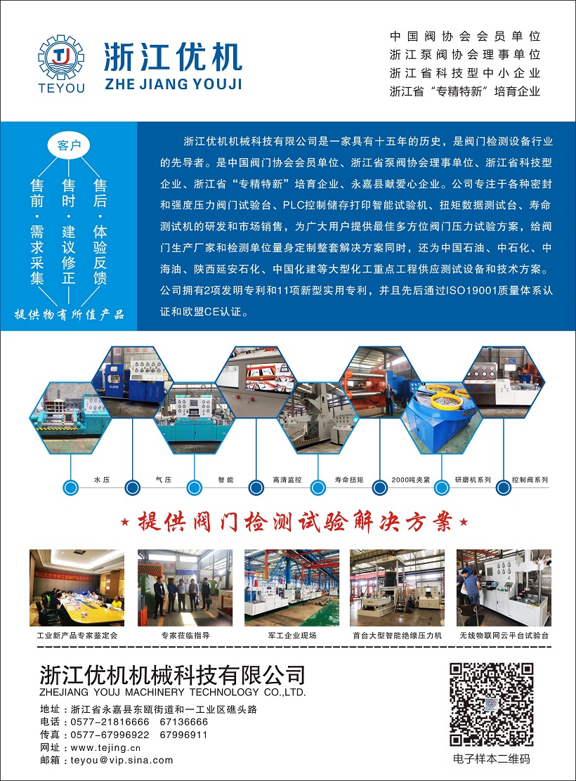 浙江優(yōu)機(jī)機(jī)械科技有限公司憑借研發(fā)投產(chǎn)的智能集成密封液壓機(jī),成功入榜浙江省先進(jìn)制造業(yè)首臺套企業(yè)名單,浙江優(yōu)機(jī)機(jī)械科技有限公司多個(gè)產(chǎn)品通過國家閥門(浙江)檢測中心檢測,相關(guān)技術(shù)經(jīng)浙江省省級工業(yè)新產(chǎn)品新技術(shù)鑒定,擁有2項(xiàng)發(fā)明專利和11項(xiàng)新型實(shí)用專利,是浙江省泵閥協(xié)會理事單位、浙江省“專精特新”培育企業(yè)、浙江省專利示范企業(yè)、浙江省科技創(chuàng)新型企業(yè)、溫州市科技創(chuàng)新企業(yè)、永嘉縣百星企業(yè)、永嘉縣愛心企業(yè)、中國石油準(zhǔn)入供應(yīng)單位、中國寶豐能源準(zhǔn)入供應(yīng)單位、山東核電設(shè)備有限公司合格供應(yīng)商。