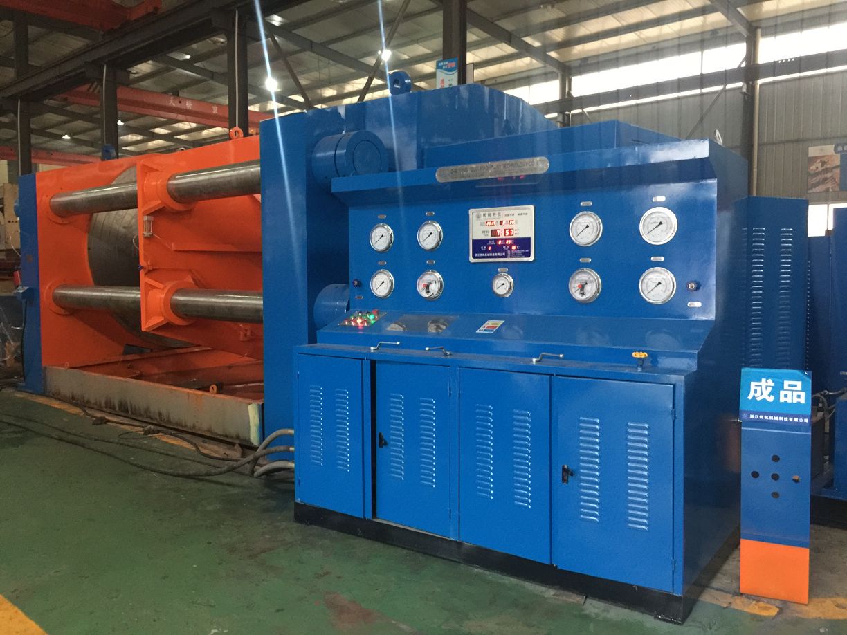 JWT-1200大口徑全焊接球閥試驗(yàn)臺(tái)是頂壓式液壓試驗(yàn)臺(tái)是我公司吸取 了國內(nèi)外同類產(chǎn)品技術(shù)精華,自主研發(fā)的新一代頂壓式液壓閥門測試臺(tái)并擁有國家技術(shù)專利知識(shí)產(chǎn)權(quán),專利號(hào)ZL2016 1 0240324.1,解決了大型全焊接球閥壓力試驗(yàn)困難、原始試壓不規(guī)范和測試過程的安全隱患問題。它具有結(jié)構(gòu)緊湊,功能完善,性能穩(wěn)定,操作方便等特點(diǎn)。液壓系統(tǒng)采用了卸荷保 壓功能,在連續(xù)開機(jī) 50 小時(shí)條件下,液壓油溫升低于 35℃,節(jié)省了測試過程的 能源消耗并提高了設(shè)備使用壽命,是其它同類產(chǎn)品所無法比擬的。JWT型大口徑全焊接閥門測試臺(tái)可以廣泛適用于閥門生產(chǎn)廠家、全焊接球閥用戶熱力公司、城網(wǎng)管道工程公司、天然氣管道工程公司等大口徑焊接式法蘭式閥門的殼體強(qiáng)度和密封性能試驗(yàn),試 驗(yàn)壓力介質(zhì)為水、氣、油均可。試驗(yàn)的方式完全符合 GB/T13927-92《通用閥門 壓力試驗(yàn)》和 JB/T9092-1999《閥門的檢測與試驗(yàn)》以及 API 598 和 API 6D 的標(biāo)準(zhǔn) 規(guī)范要求。